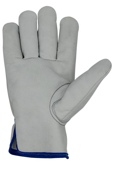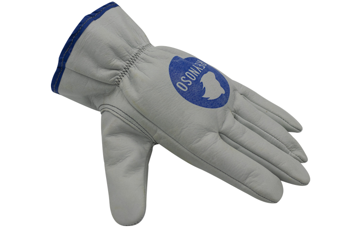 Guante fabricado con piel de res en color gris. Con espesor de 1 a 1.2mm. Costuras tipo candado con hilo de alta resistencia. Ribete o bies pegado en manga. Elástico ajustable en dorso. Dedo pulgar tipo cono. Costuras interiores asentadas y volteadas